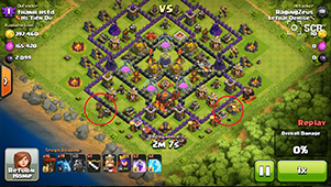 2. Check the whole base of the opponent and always have in your mind a place where you can drag the CC troops to kill them, outside the range of any defensive unit whenever it is possible.