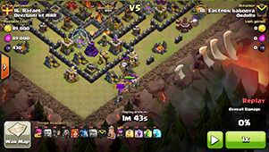 1. After you dealt with the CC troops by dragging them into a corner, you can start to deploy the hog riders. How you deploy them is based on the arrangement of the defences within the opponent's base. The hog riders NEED to be placed in the opposite side from where the defender heroes are, so that when the hogs reach the other side of the base and finish the defences, they will also deal with the heroes.